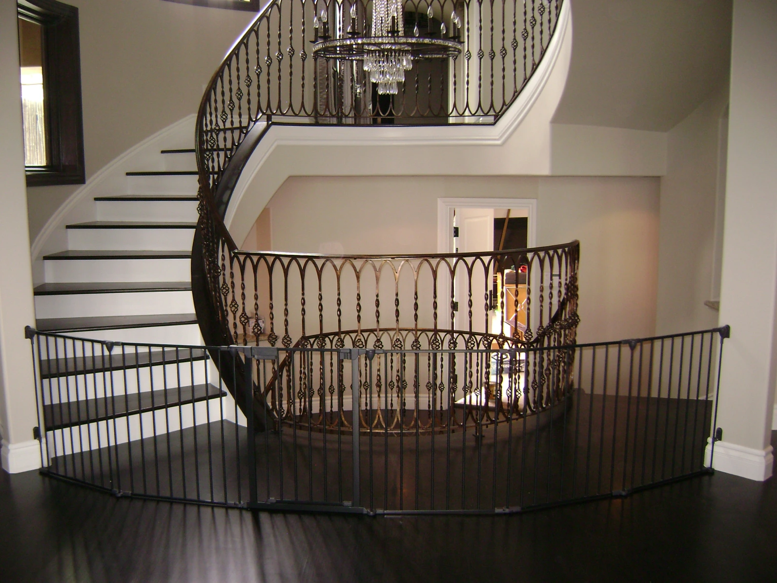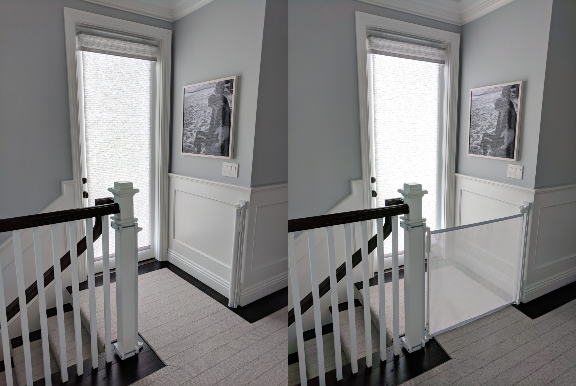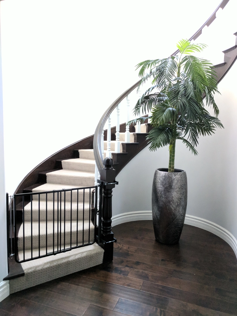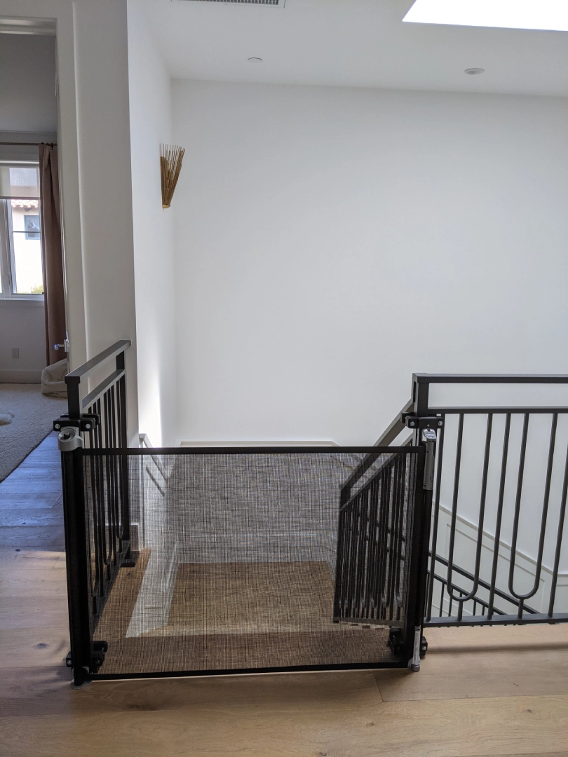 Stair gates must be wall-mounted with custom hardware for your child’s utmost safety. Adults should never climb over gates, and older children should not swing on open gates, as this type of excessive pressure can and will rip the gate from the wall. More injuries are reported from parents taking a shortcut over the gate. Taking care of little ones is a hard enough job – let us help you pick the right, well-functioning gate so YOU don’t get injured! Keep stair gates closed at all times when small children are in the home. We get sidetracked and forget easily, so just CLOSE it.