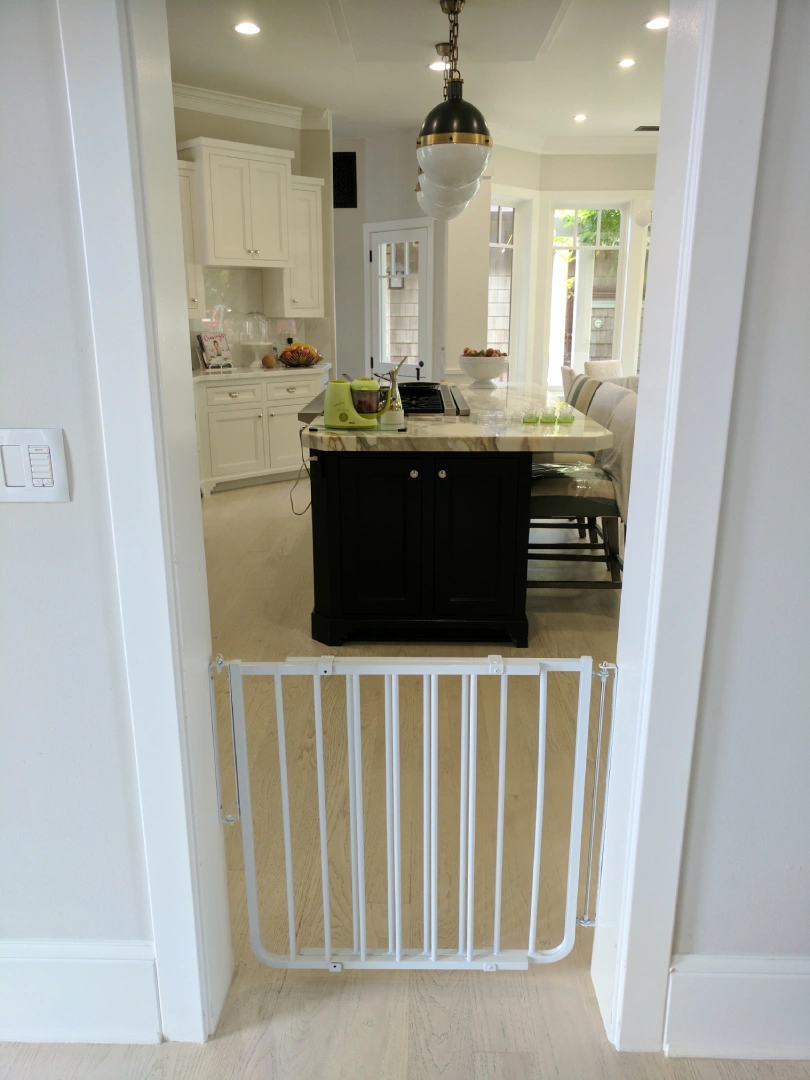 It’s a common misnomer that pressure gates don’t cause wall damage. They DO CAUSE DAMAGE to plaster and/or drywall and most often require patching. Pressure gates often loosen when used in high-traffic areas and need to be retightened, causing excessive pressure on walls, resulting in cracking and/or wall indentation. Our advice is to consider the location of the pressure gate. We can help with this.